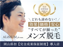 ALiSSUM for men【アリッサムフォーメン】 岡山店 フェイシャル・脱毛 ネット予約あり夜20時以降営業クレジットカードOK無料駐車場あり美肌ケア男性OK 住所 岡山県岡山市北区西古松1丁目37−19 1F 電話番号 086-289-6259 PR 【岡山県内2店舗展開。創業10周年のメンズ脱毛サロン】 岡山でメンズ脱毛するならアリッサムフォーメン岡山店にお任せ下さい。脱毛が初めての方から、他店で満足した効果を実感出来なかった方までメンズ脱毛ならアリッサムフォーメンにお任せ下さい!当日予約可能!無料カウンセリングも行っておりますのでお気軽にご相談下さい! ホットペッパーネット予約 ニュース:0件